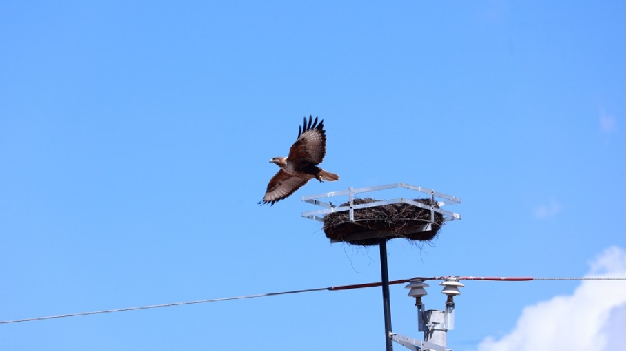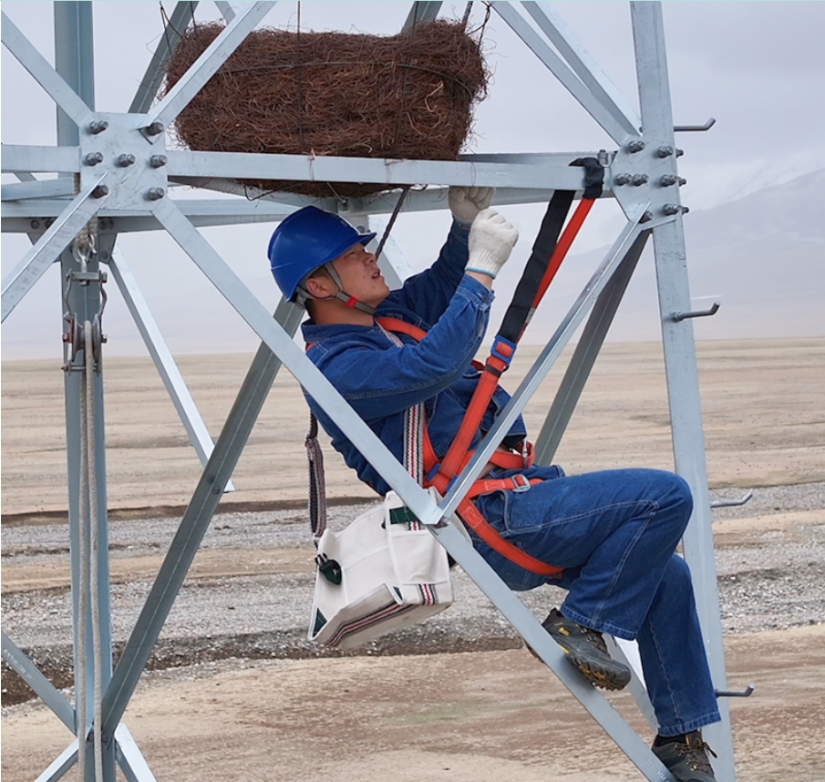 在高原草原地區(qū),獵隼等珍稀猛禽喜歡擇高而居,但這些地區(qū)通常缺乏高大樹木,又高又穩(wěn)的輸電桿塔便成為筑巢首選。然而,鳥兒銜來的鐵絲、木棍等筑巢材料,卻容易引發(fā)線路跳閘。